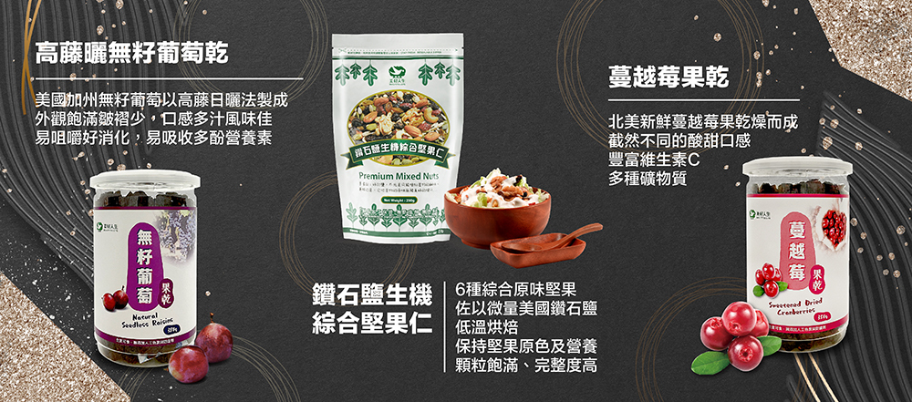 1.採用美國加州天然無籽葡萄,經過高藤日曬法晾曬8週