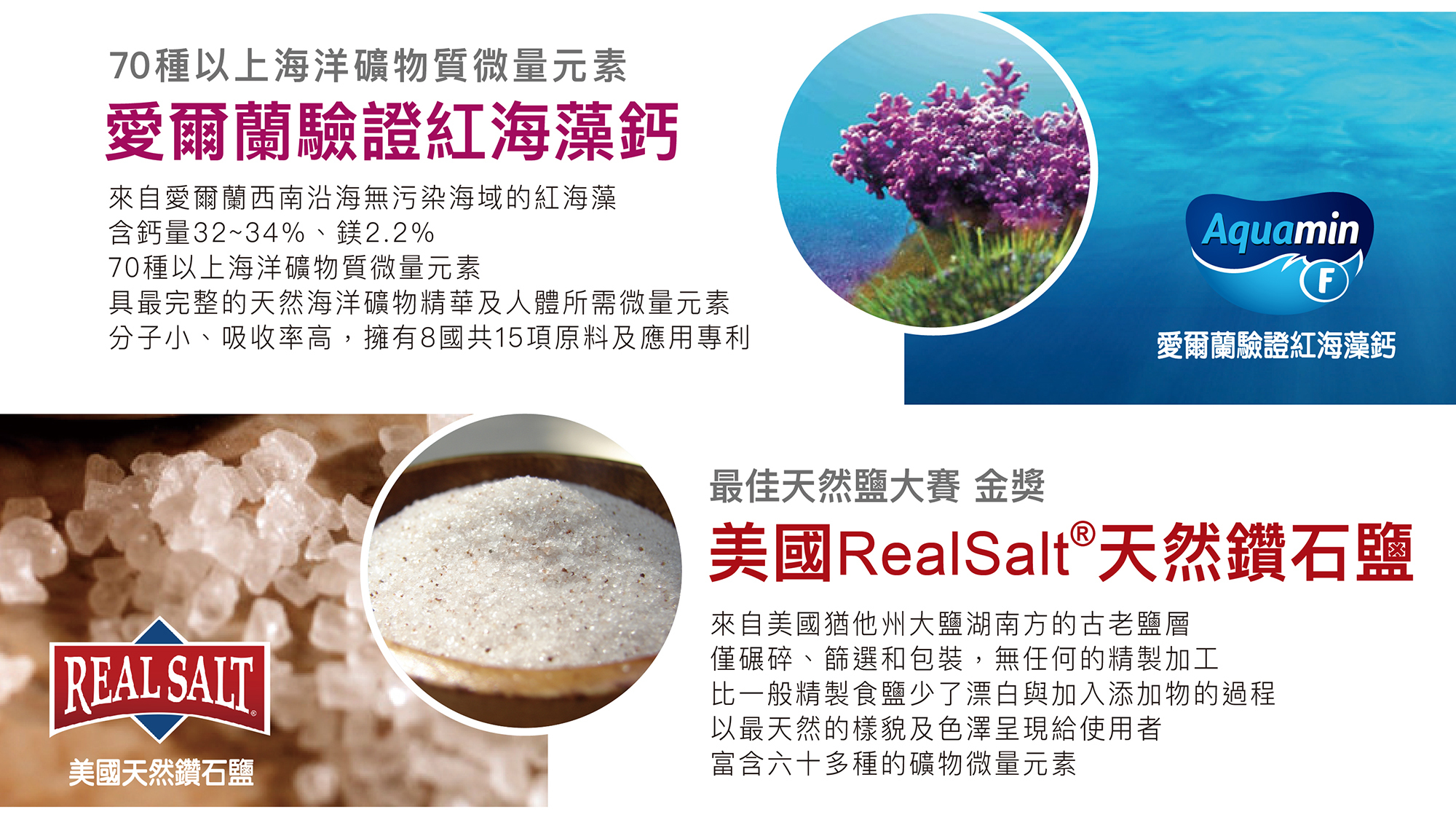 含有高含量鈣及鎂、鋅、鐵、硒等等70種以上天然微量礦物質
