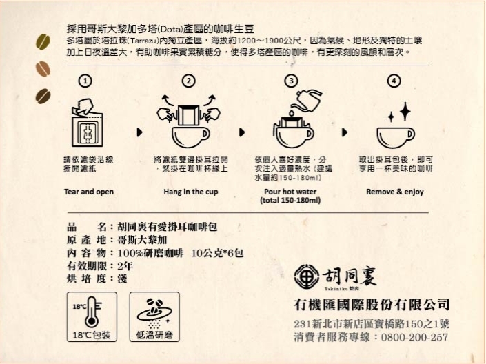 簡便的有愛掛耳包設計,讓您隨時隨地都能享用餘韻回甘的好風味。