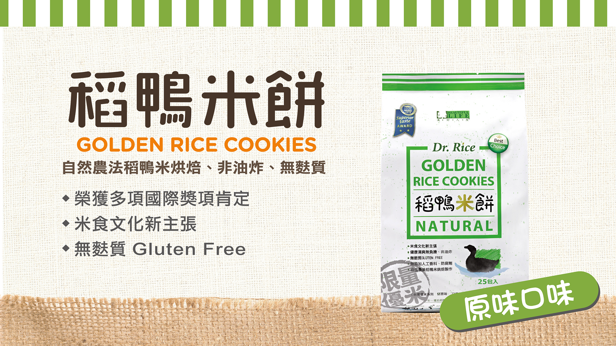 稻鴨米餅全系列商品(經典/有機原味、地瓜、菠菜口味)為米製品,適用於孩童、成人、長輩皆可食用。