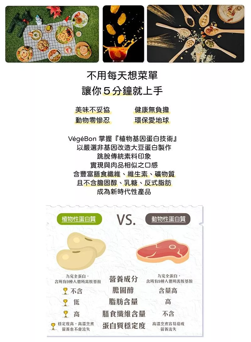 ◎健康植物蛋白不含膽固醇,享受美食零負擔。