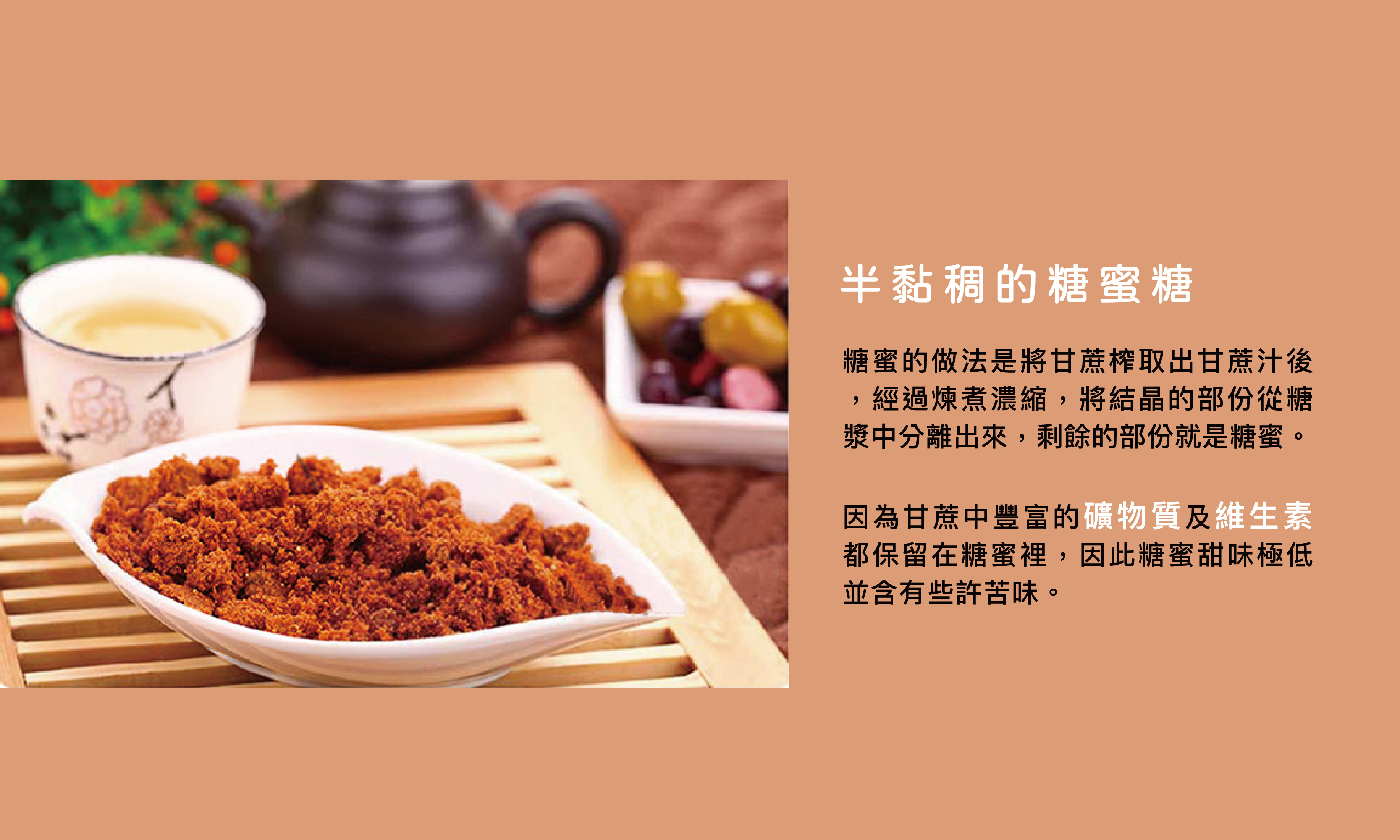 半黏稠的糖蜜糖,糖蜜的做法是將甘蔗榨取出甘蔗汁後,