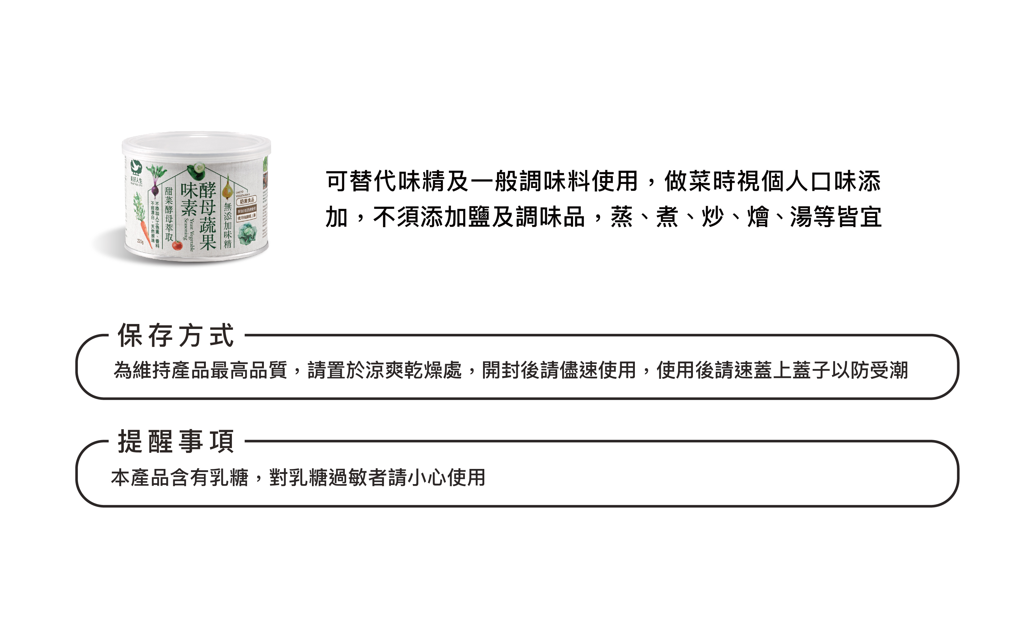由甜菜酵母、蔬果萃取、香菇、海鹽完美比例配方,